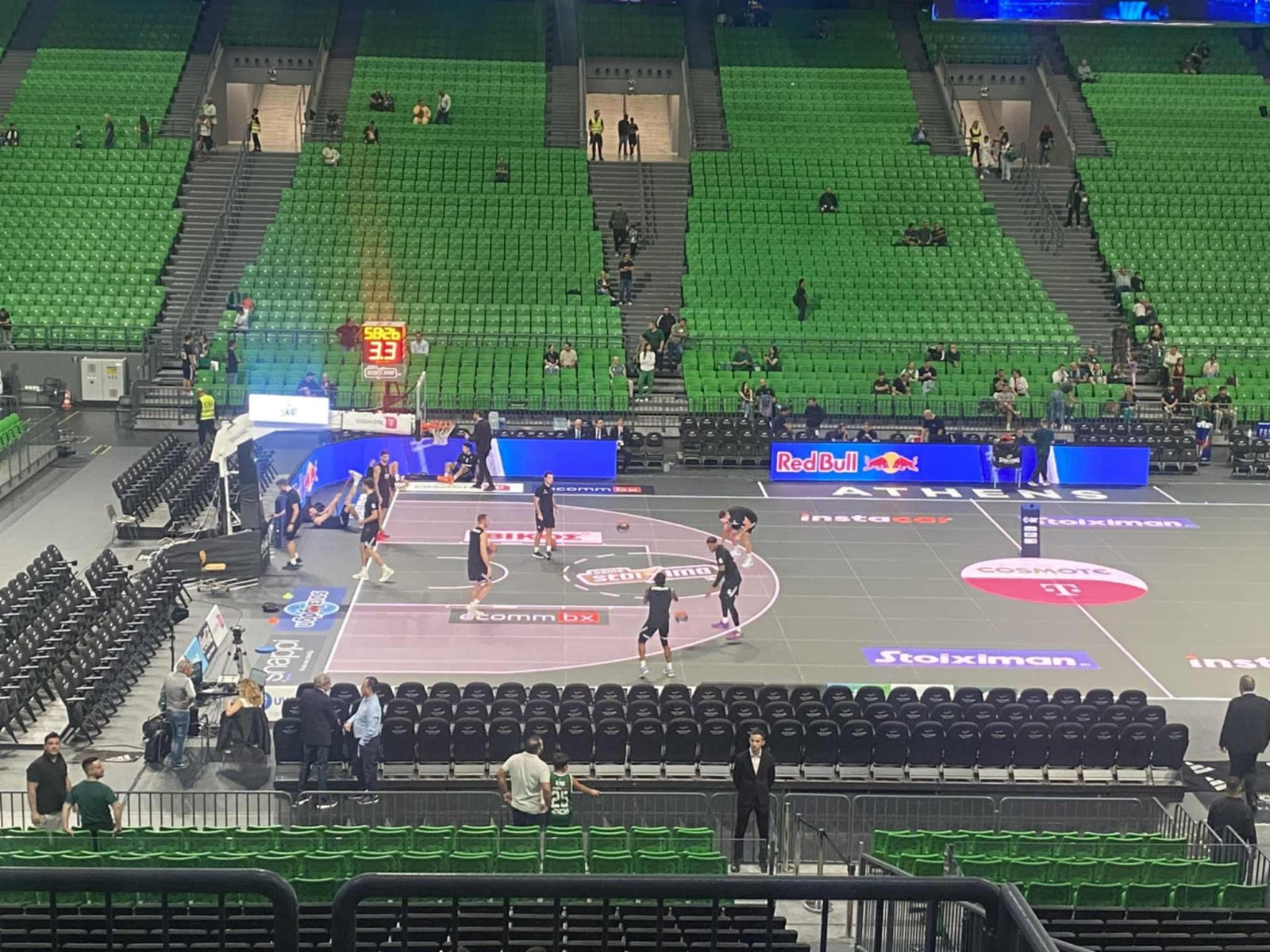 Οι δύο ομάδες έχουν ήδη βγει στο παρκέ για την προθέρμανσή τους πριν από την έναρξη του αγώνα.