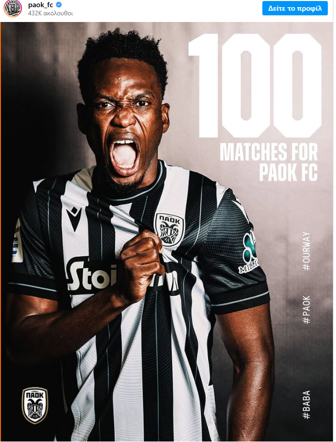 Ο Ράχμαν Μπάμπα συμπλήρωσε 100 συμμετοχές με τη φανέλα του ΠΑΟΚ στην αναμέτρηση κόντρα στον Αστέρα Aktor (2/3).