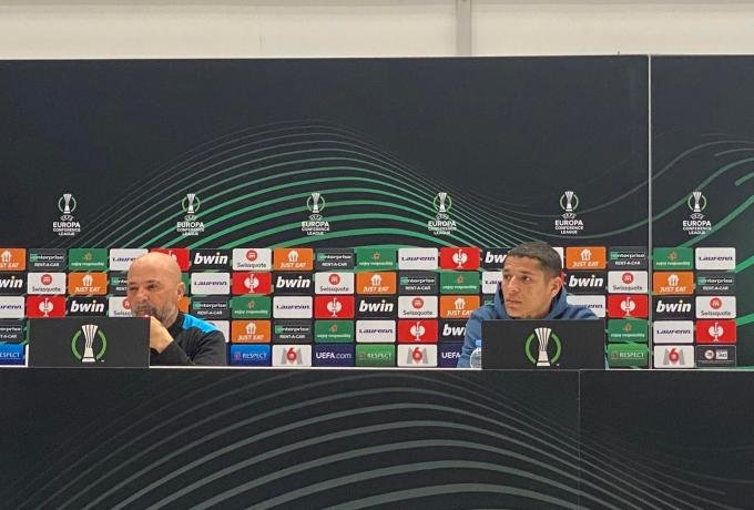 Τόνισε πως δεν έχει παίξει ποτέ απέναντι σε ελληνική ομάδα και αυτό που θα τον ικανοποιούσε είναι να δει τους παίκτες του να τελειώνουν τις φάσεις και να κερδίζουν το ματς, αποφεύγοντας να μιλήσει για σκορ. Μάλιστα, στο κάδρο μπήκε και ο Ραζβάν Λουτσέσκου καθώς σύμφωνα με τον Σαμπάολι: «Σίγουρα θα είναι μία μάχη πάγκων. Μία στρατηγική μάχη με τον Λουτσέσκου, το πώς αντιμετωπίζουμε το παιχνίδι αλλά το αποτέλεσμα θα το φέρουν οι παίκτες».