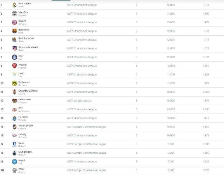 Οχτώ χρόνια αργότερα και μετά από την εντυπωσιακή πορεία του ΠΑΟΚ στην Ευρώπη με το αήττητο σερί των 11 παιχνιδιών έχει φέρει τον Δικέφαλο για πρώτη φορά στην ιστορία του στο Νο20 της ευρωπαϊκής βαθμολογίας!