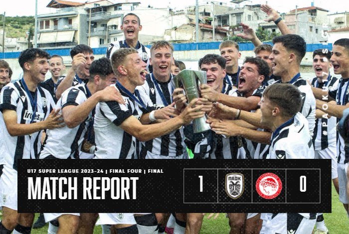 Ένα γκολ ήταν αρκετό – ένα γκολ από τον Μύθου, που δυστυχώς λίγο μετά τραυματίστηκε – για να κερδίσει το πρωτάθλημα της Super League η δική μας Κ17. Η ομάδα των Ορφανού και Μπίκα, η γενιά μας των 2007 (μαζί και “μικροί” του 2008) κέρδισε 1-0 τον Ολυμπιακό κι έκλεισε με τον ομορφότερο τρόπο την ποδοσφαιρική σεζόν για τον ΠΑΟΚ και την Super League.