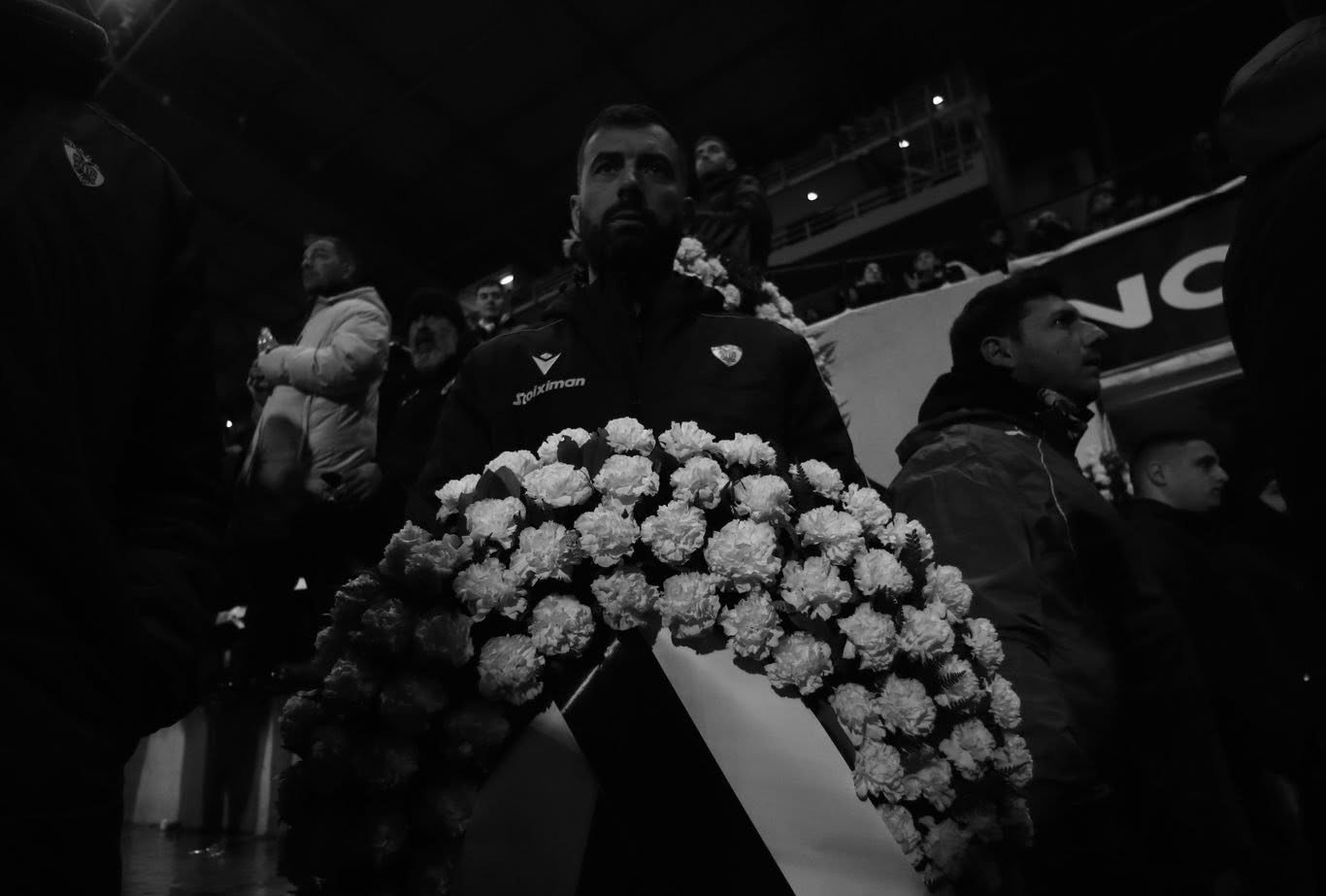 Η ομάδα μπάσκετ του ΠΑΟΚ βρέθηκε στο γήπεδο της Τούμπας πριν από τη σέντρα της αναμέτρησης με τον Πανσερραϊκό, με τον Βαγγέλη Μαργαρίτη και τον αρχηγό του μπασκετικού τμήματος, Θοδωρή Ζάρα, να καταθέτουν στεφάνι στη μνήμη των αδικοχαμένων φιλάθλων του συλλόγου.