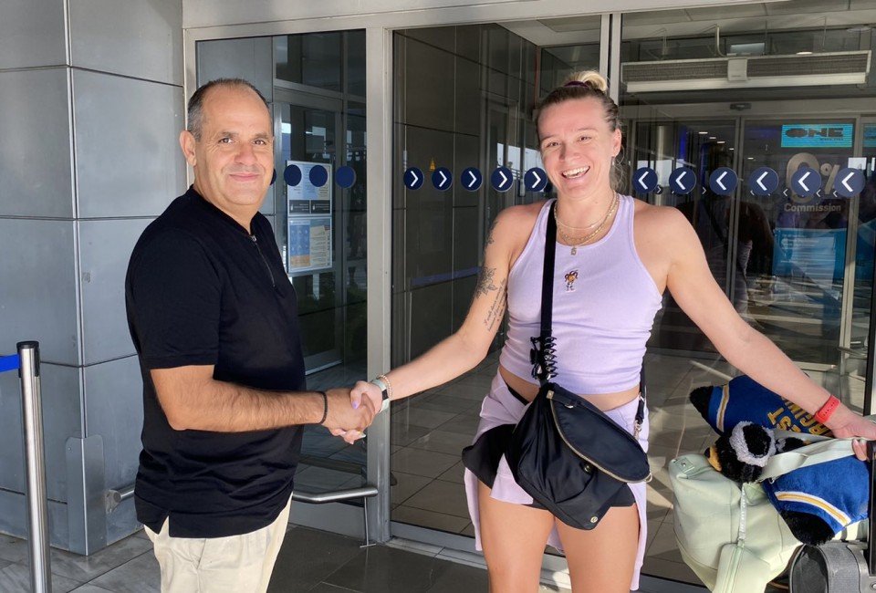 Η Αμερικανίδα ακραία, προσγειώθηκε από την Κωνσταντινούπολη στο Αεροδρόμιο «Μακεδονία», εκεί όπου την υποδέχτηκε ο Team Manager της ομάδας, Γιώργος Φουργκατσιώτης, ο οποίος την καλωσόρισε στην Θεσσαλονίκη και της μετέφερε τις καλύτερες ευχές του.