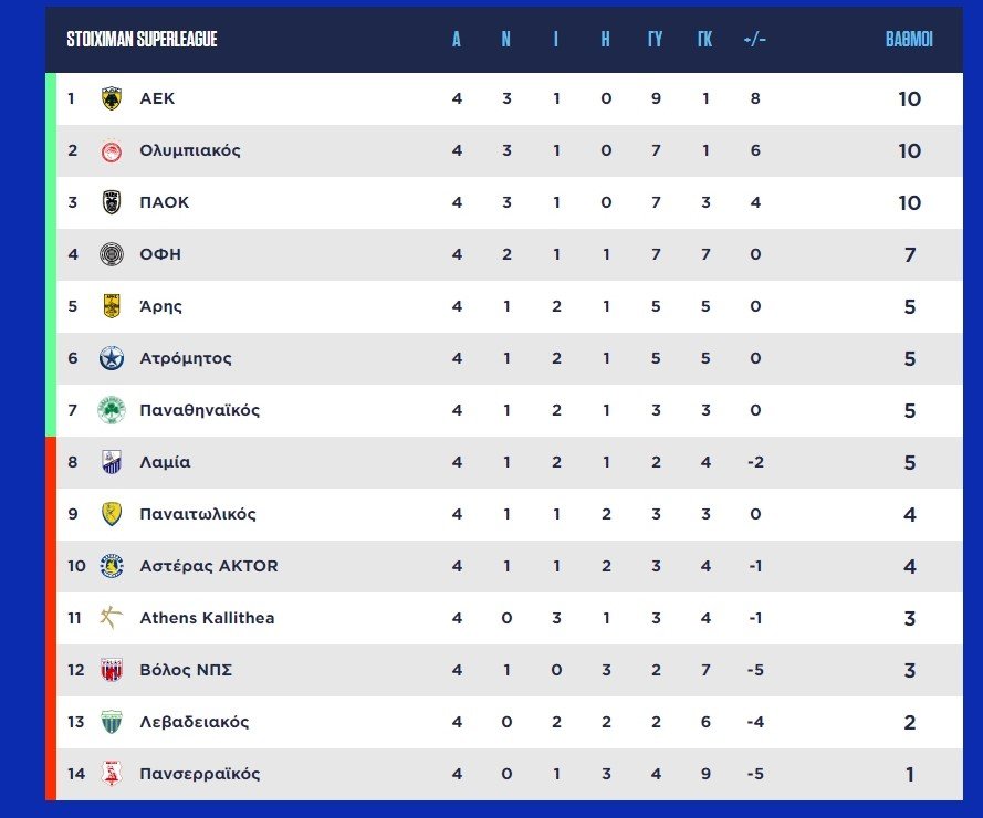 - 20:00 ΑΕΚ – Βόλος 2-0