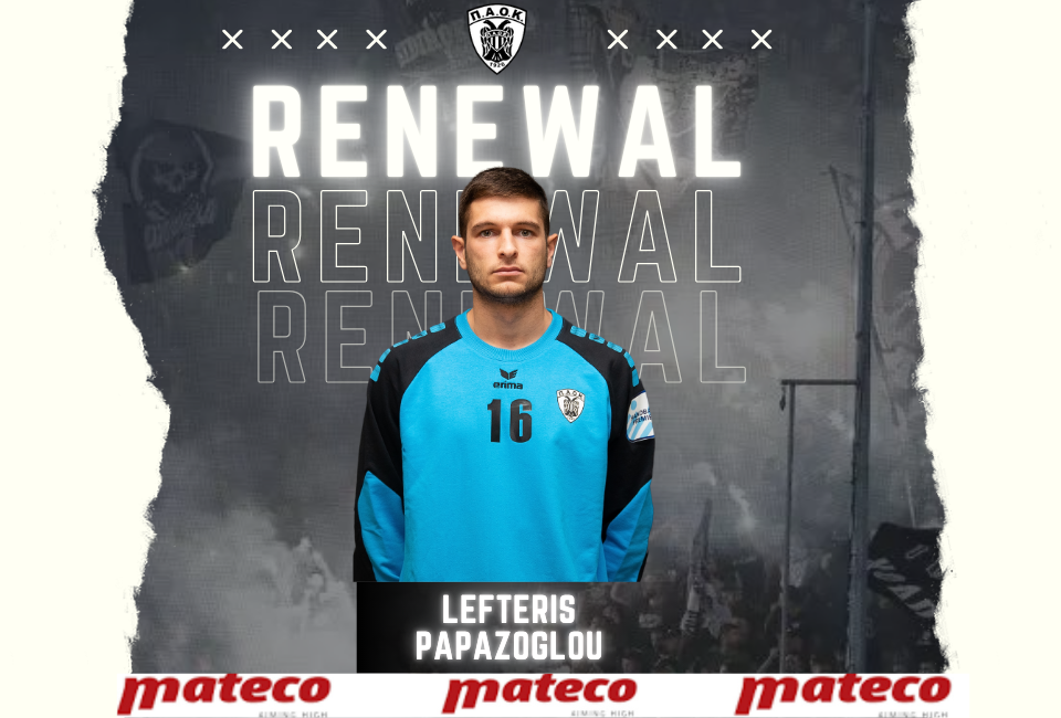 Ο ΠΑΟΚ, και το τμήμα Χάντμπολ ανδρών, ανακοινώνουν την ανανέωση συνεργασίας με τον αθλητή, Λευτέρη Παπάζογλου, για την αγωνιστική περίοδο 2024-2025.