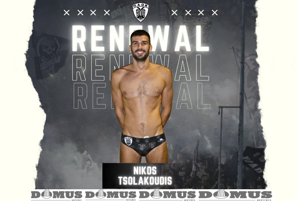 Ο ΠΑΟΚ, και το τμήμα Πόλο ανδρών, ΠΑΟΚ Domus Ergo, ανακοινώνουν την ανανέωση συνεργασίας με τον αθλητή, Νίκου Τσολακούδη, για την αγωνιστική περίοδο 2024-2025.