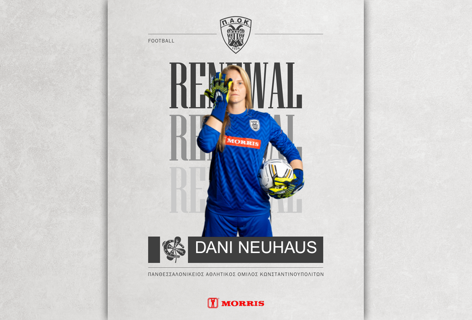 Ο ΠΑΟΚ, και το τμήμα Ποδοσφαίρου γυναικών, ΠΑΟΚ Morris, ανακοινώνουν την ανανέωση συνεργασίας με την αθλήτρια, Ντάνι Νόιχαους, για την αγωνιστική περίοδο 2025-2026.