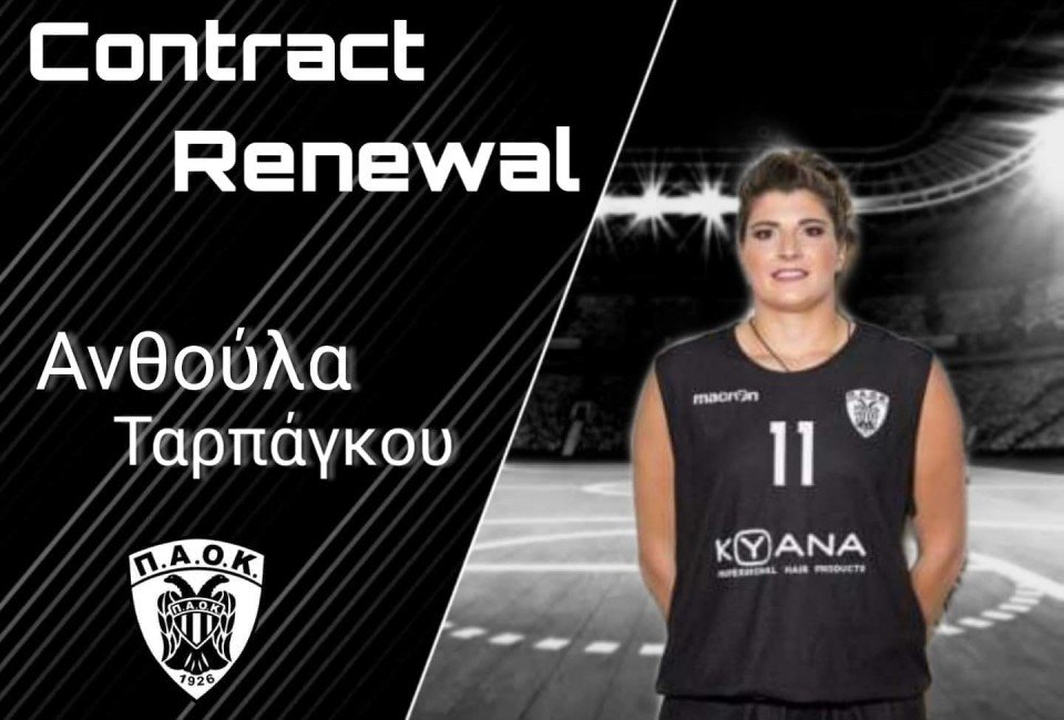 Ο ΠΑΟΚ και το τμήμα Μπάσκετ Γυναικών, ΠΑΟΚ ΚΥΑΝΑ, ανακοινώνουν την ανανέωση της συνεργασίας με την αθλήτρια και «αρχηγό» της ομάδας, Ανθούλα Ταρπάγκου, για την αγωνιστική περίοδο 2019-20.