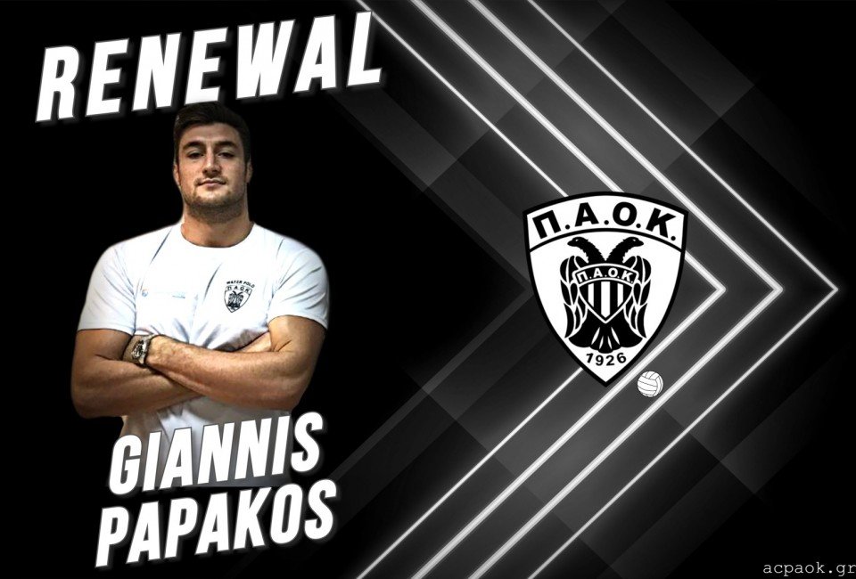 Ο ΠΑΟΚ και το τμήμα πόλο ανδρών του Συλλόγου μας, ΠΑΟΚ Prima Holidays, ανακοινώνουν την ανανέωση συνεργασίας με τον αθλητή, Γιάννη Παπάκο, για την αγωνιστική περίοδο 2020-21.