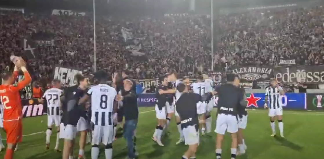 Mετά το τελευταίο σφύριγμα του διαιτητή οι ποδοσφαιριστές του ΠΑΟΚ πήγαν προς την κερκίδα να πανηγυρίσουν την μεγάλη νίκη κόντρα στην Άιντραχτ.