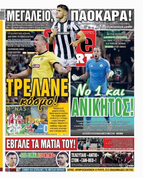 Ένα από τα βασικά θέματα των εφημερίδων “Metrosport” και “Live Sport” είναι η μεγάλη νίκη που πέτυχε ο ΠΑΟΚ στο γήπεδο της Τούμπας κόντρα στην Άιντραχτ.