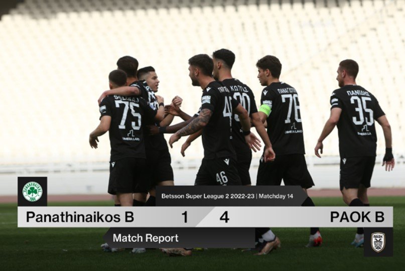 Διψασμένοι για ποδόσφαιρο οι παίκτες του ΠΑΟΚ Β μπήκαν με ορμή στο παιχνίδι με τον Παναθηναϊκό Β, πέτυχαν τρία γκολ σε 13 λεπτά, ήταν κυριαρχικοί, απειλούσαν την αντίπαλη εστία σχεδόν σε κάθε τελική προσπάθεια κι έφυγαν από το ΟΑΚΑ με ένα εμφατικό 1-4. Μετά το ματς της 14ης αγωνιστικής του «πολύπαθου» πρωταθλήματος της Betsson Super League 2, ο ΠΑΟΚ Β είναι πλέον στους 25 βαθμούς.