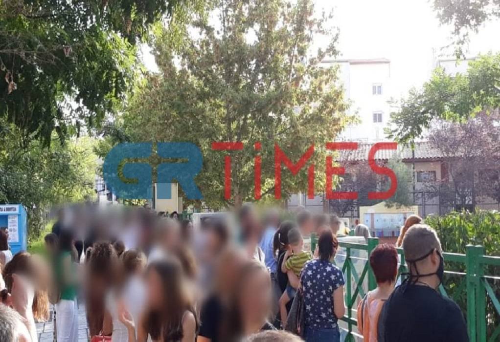 Το πρωί της Δευτέρας, ο φωτογραφικός φακός αποτύπωσε εικόνα συνωστισμού έξω από το 3ο Πειραματικό Δημοτικό Σχολείο Ευόσμου, όπου συγκεντρώθηκαν δεκάδες γονείς.