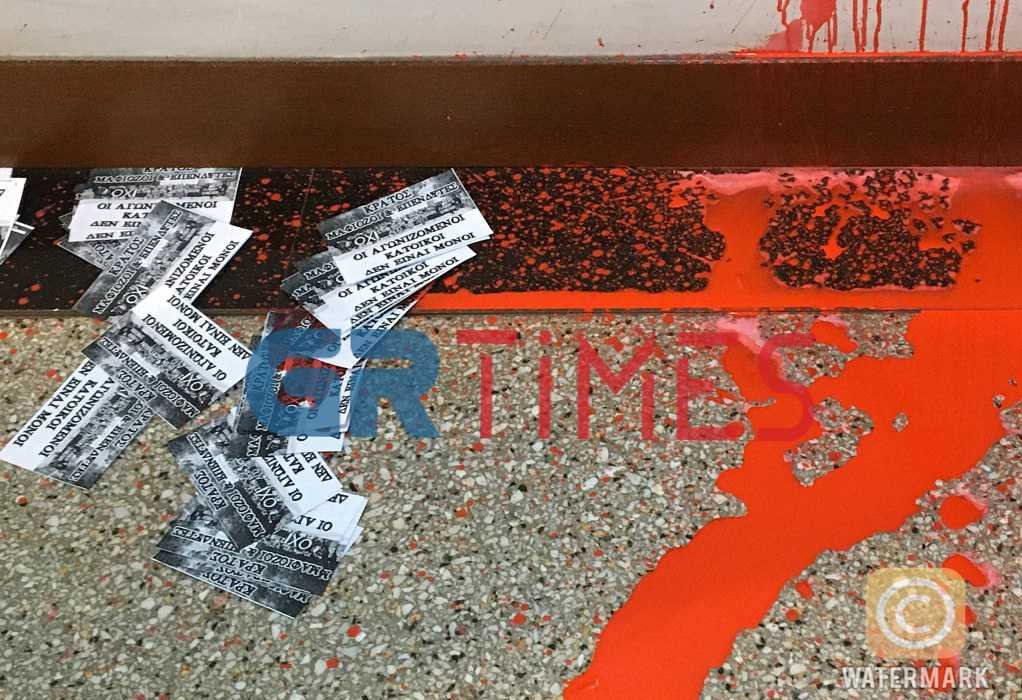 Οι δράστες πέταξαν τις μπογιές και τα τρικάκια έξω από την πόρτα του Επιμελητηρίου και εξαφανίστηκαν στους γύρω δρόμους