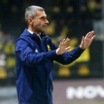 Οι ποδοσφαιριστές της ομάδας της Θεσσαλονίκης έκαναν την εμφάνιση τους στο “Κλεάνθης Βικελίδης” με μαύρες μπλούζες με την εικόνα ενός οπαδού και την ατάκα “καλό ταξίδι στρατηγέ”.