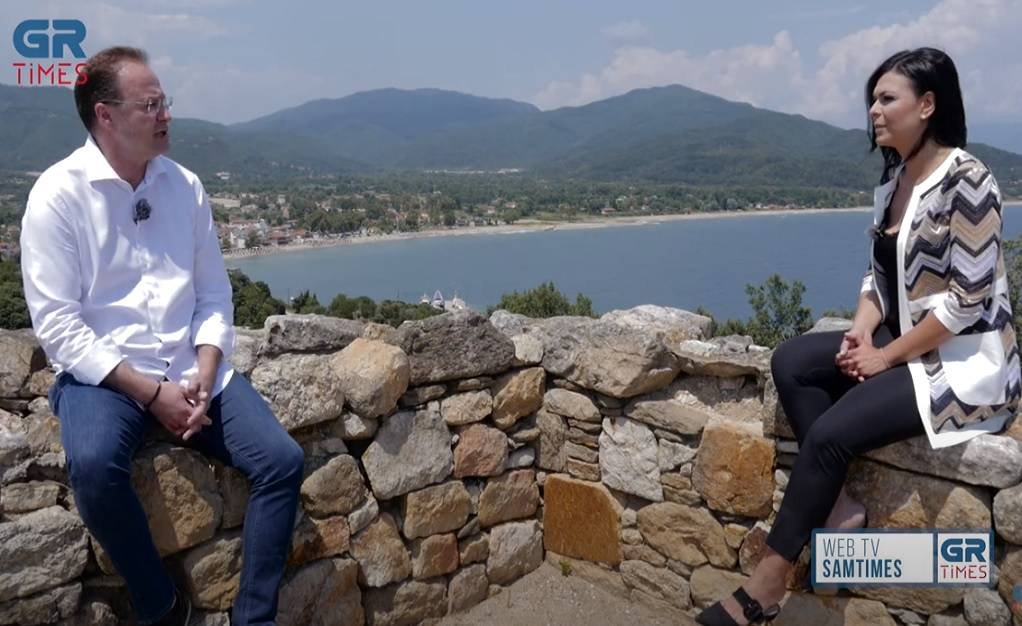 O Δήμαρχος Αριστοτέλη, Στέλιος Βαλιάνος, μιλά στην εκπομπή «SamTimes» της WebTv του Grtimes.gr και τη δημοσιογράφο Μαρία Σαμολαδά, στο χαρακτηριστικότερο σημείο του δήμου, στην ανασκαφή της πόλης των Αρχαίων Σταγείρων, στη γενέτειρα του οικουμενικού φιλοσόφου, στην Ολυμπιάδα.