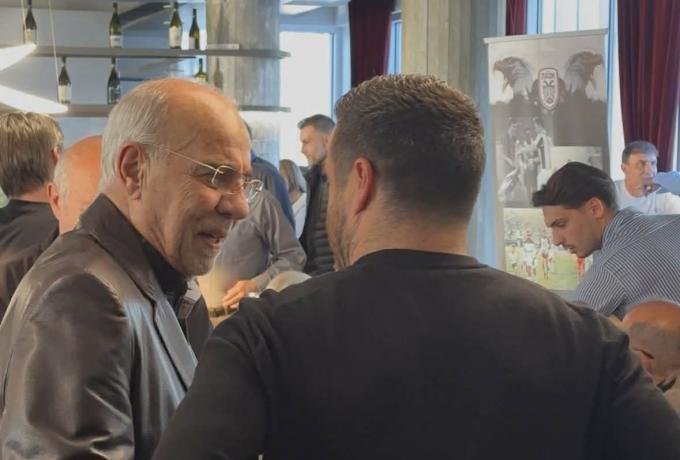 Ξεχωριστή στιγμή της βραδιάς αποτέλεσε η ένθερμη αγκαλιά του με τον θρύλο του συλλόγου Γιώργος Κούδας, με τους δύο άνδρες να έχουν και μια σύντομη συνομιλία, σε ένα στιγμιότυπο που συμβόλισε τη σύνδεση διαφορετικών γενεών του Δικεφάλου του Βορρά.