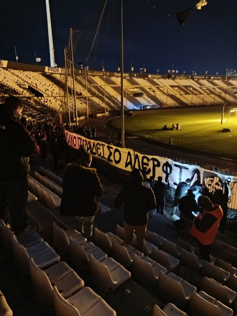Η αποστολή του ΠΑΟΚ κατέθεσε επίσης ανθοδέσμη εκ μέρους του Ιβάν Σαββίδη, ως φόρο τιμής στα αδικοχαμένα παιδιά. Συνθήματα όπως «ΠΑΟΚ σ’ αγαπώ και όταν θα πεθάνω» και «αδέρφια ζείτε» ακούστηκαν στον ουρανό της Τούμπας, σε μια σιωπηλή αλλά δυνατή στιγμή μνήμης και σεβασμού.