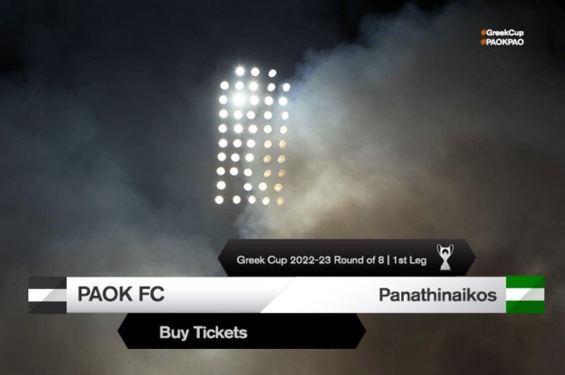 Η ΠΑΕ ΠΑΟΚ ανακοινώνει ότι την Δευτέρα (16.01) στις 09:00 θα ξεκινήσει η διάθεση των εισιτηρίων του αγώνα ΠΑΟΚ-Παναθηναϊκός για τα προημιτελικά του Κυπέλλου Ελλάδος Novibet 2022-23 που θα διεξαχθεί την Τετάρτη (18.01, 20:30) στο γήπεδο της Τούμπας.